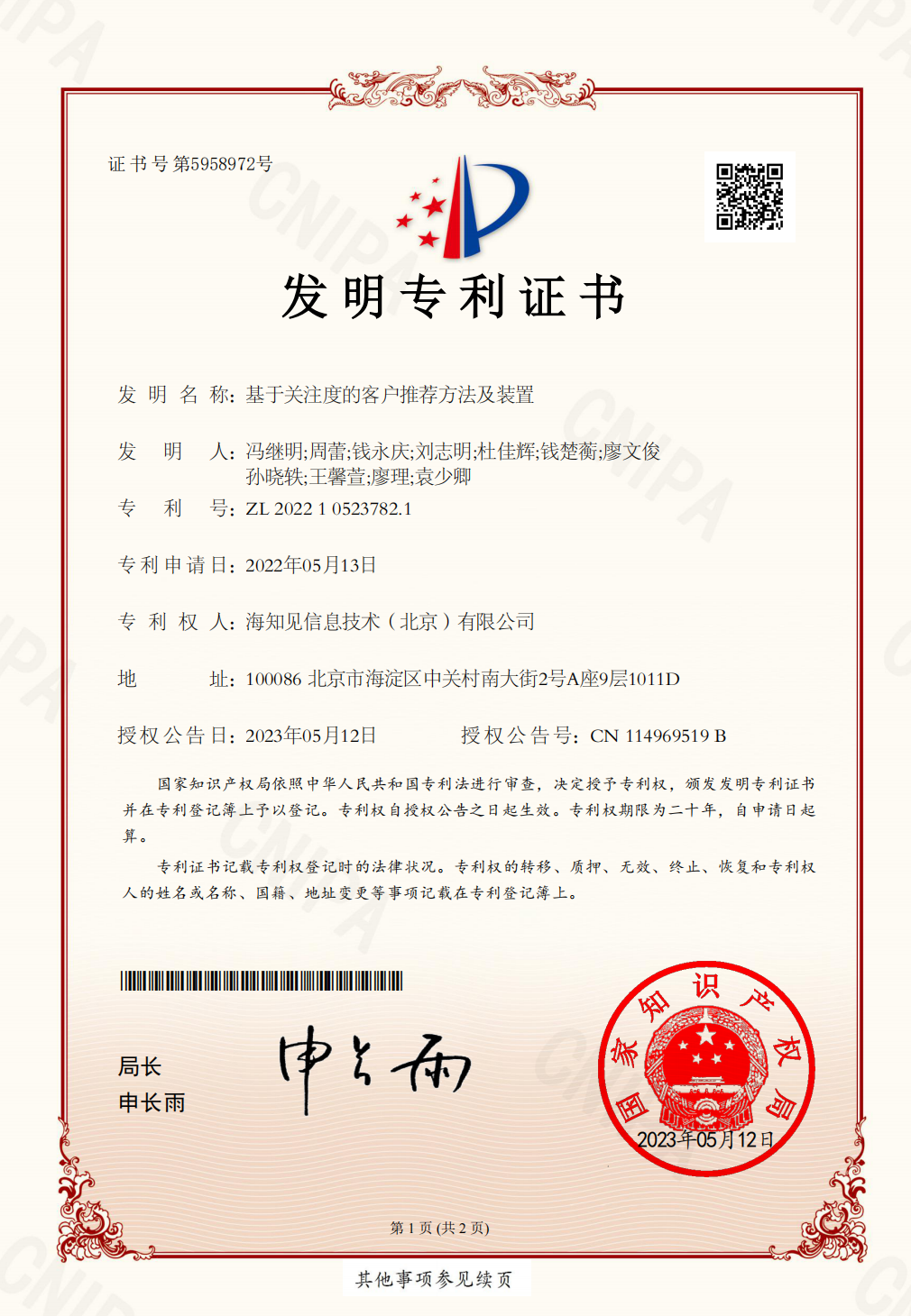 发明专利证书